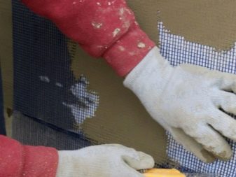 - Putty must be in protective clothing and a mask or respirator, because from any careless movement jet with a rather caustic composition, pushing from the wall, can get into the eyes or respiratory tract.