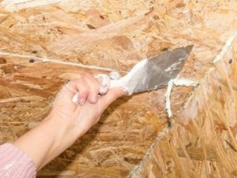 The greater the pre-coat layer on the OSB slab, the better the putty will fall. Soil, too, should be chosen without water in the composition, and with the addition of varnishes, for example, glyptal. There is a separate type of special acrylic putty for OSB boards and other chipboard surfaces. To achieve the desired viscosity, they are simply diluted not with water, but with solvents. As for the oil-adhesive putty, it is also well suited, only it is better to dilute the mixture with linseed oil.