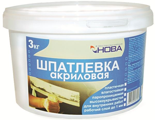 - Acrylic or water-based putty - the safest for use in residential premises, because water does not harm human health. It has good ductility and toughness, so it perfectly fills small cracks and chips in the walls, leaving an even layer, pleasant to the touch.