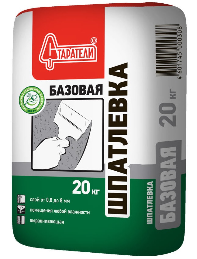 - Starting putty or a surface-leveling primary layer. The structure of such putty is very rough, it is itself dense and high strength. The first layer comes into contact with the untreated wall, on which, in addition to moisture, grease and dirt, there can be particles of previous paintwork and paper layers, as well as construction debris. Even putting a putty on top of the plaster layer, it is impossible to be sure that all of the above defects have hidden the layer of plaster.The main task of the starting putty is to fill deep cracks and chips in the wall, so it is applied with a sufficiently thick layer - about 15-20 mm.