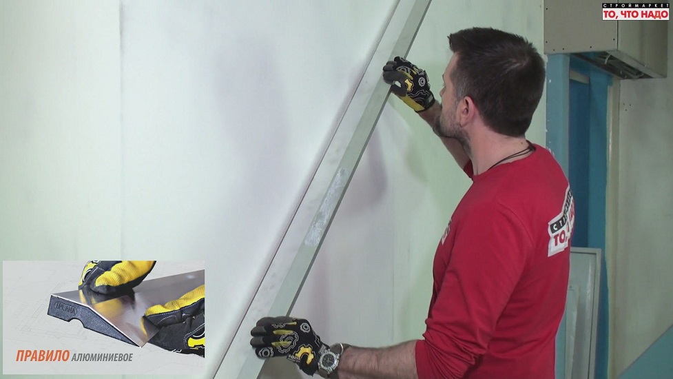 - Rule - A special tool like a large metal rail with a corrugated structure, thanks to which you can hold the ledge and guide it along the wall.The rule is used to level the surface when applying a very large layer of putty.