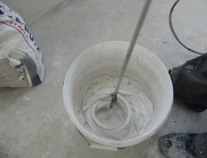 First, add some water to the putty container and mix with a simple spatula. The next step to a homogeneous consistency is better to bring everything with a drill with a nozzle in the form of a mixer. Her blades are made of special steel, and they spin with a certain force, which helps them not to get stuck in the viscous composition of putty.