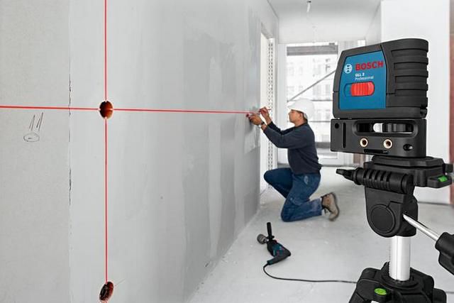 - Laser level - Also an additional convenience, not included in the inexpensive minimum set. You can either borrow it from your neighbors or buy it for future use, as it will come in handy for future repairs. The device is installed in a corner like a beacon, and then the beam shows even minimal irregularities on the surface due to applying a too thick layer of putty.
