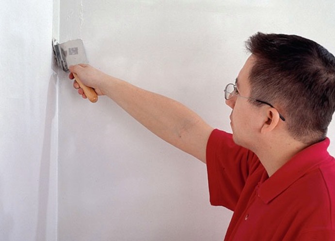 - A layer of putty start to put from the corner of the room to create a uniform smooth surface without joints and gaps.