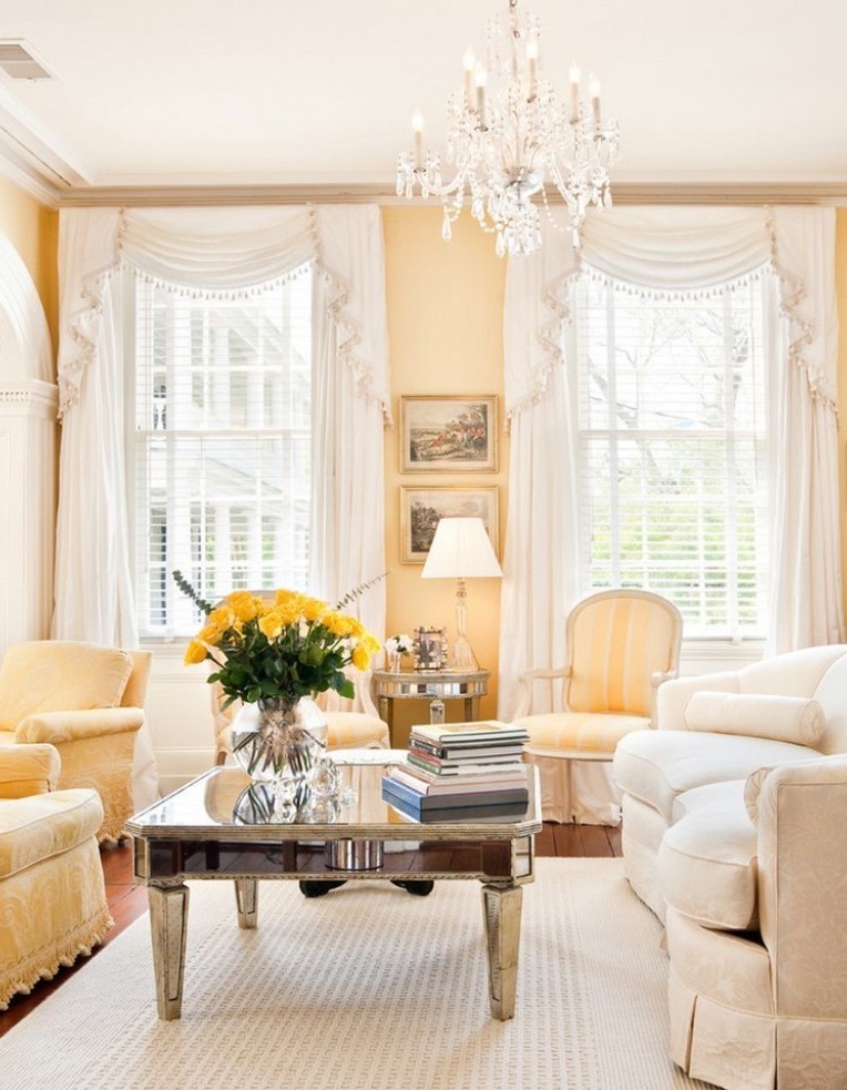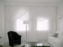 - Monochromatic white curtains are a sign of excellent taste and grace, because they are perfectly combined with any interior and color of furniture, and also give the living room a festive look.