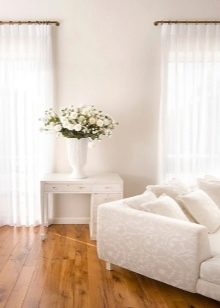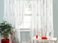 - Appropriate white curtains will look in the rooms, decorated in styles Provence or Country. In this case, the curtains will give a certain charm and expressiveness of the room.