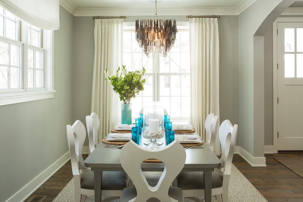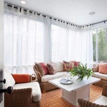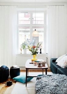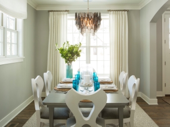 In the kitchen or in the dining room white material will also look advantageous. Curtains will make the room even brighter and at the same time protect from the sun's rays.