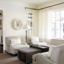 White curtains look appropriate in almost any room with different styles. But it is worth noting that white curtains in the children's room will be impractical. The child will constantly smudge, touch, knead long curtains.Yes, and light monochrome interior is not very interesting to the kid.