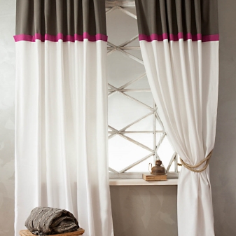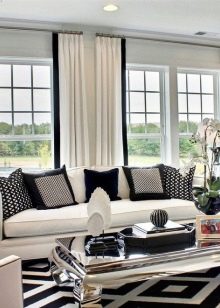 The combination of beige and white always creates a feeling of elegance and warmth. The combination of light curtains and various black details looks original and luxurious. Excellent looking curtains, decorated with contrasting patterns, for example, with a floral print, striped with black, burgundy or gold pattern. But with such a variety of shades should carefully consider the decor of the room so that there is no variegation.