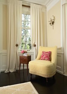 - In the rooms made in classic style, you can hang curtains with draperies or pelmet.
