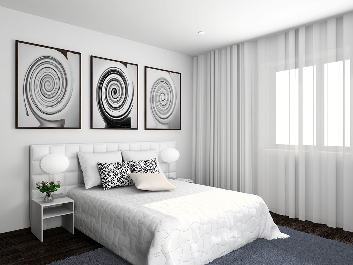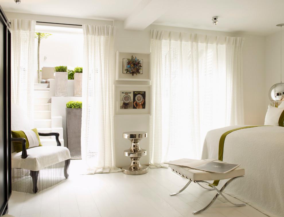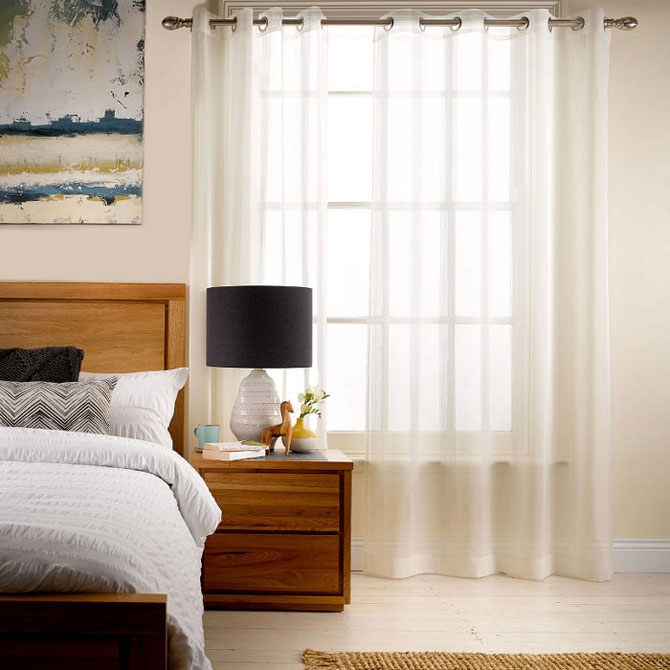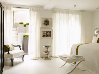 The ideal option for snow-white curtains will be the bedroom. They will create an atmosphere of rest and tranquility in the room.