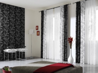 - For style Modern Light white curtains in combination with thick tulle of dark colors will be the ideal solution.