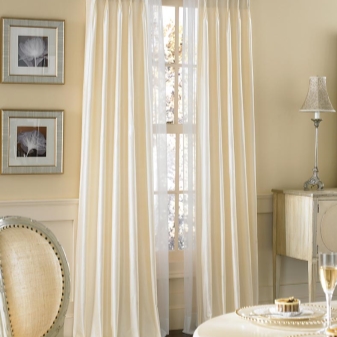- Silk. White silk curtains are considered one of the most stylish and elegant, but require careful maintenance. Curtains do not withstand processing in automatic machines and are subject to heavy shedding.Therefore, it is recommended to give the curtains only to professionals in the dry cleaning.