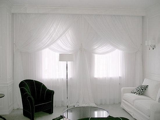- To the floor. Best of all, long curtains look on large, arched, French windows, as well as where there is a chic street view.