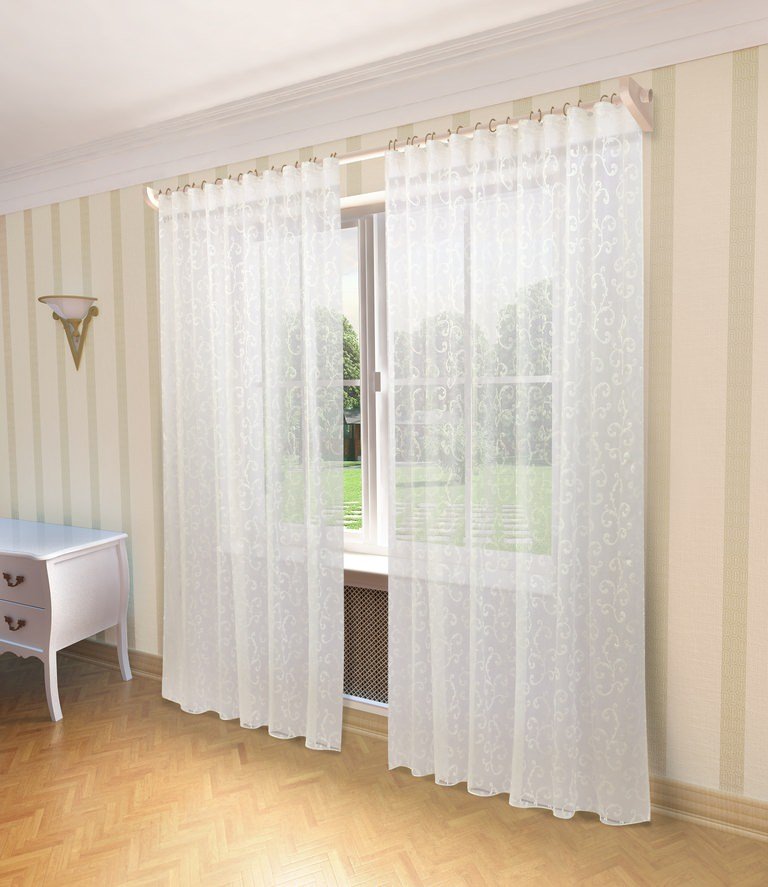 From the correct choice of this attribute will depend on the overall appearance of the curtains. There is no need to purchase a massive or bright holder. Best of all with white long curtains will look inconspicuous eaves of neutral or black color, adapted from the ceiling.