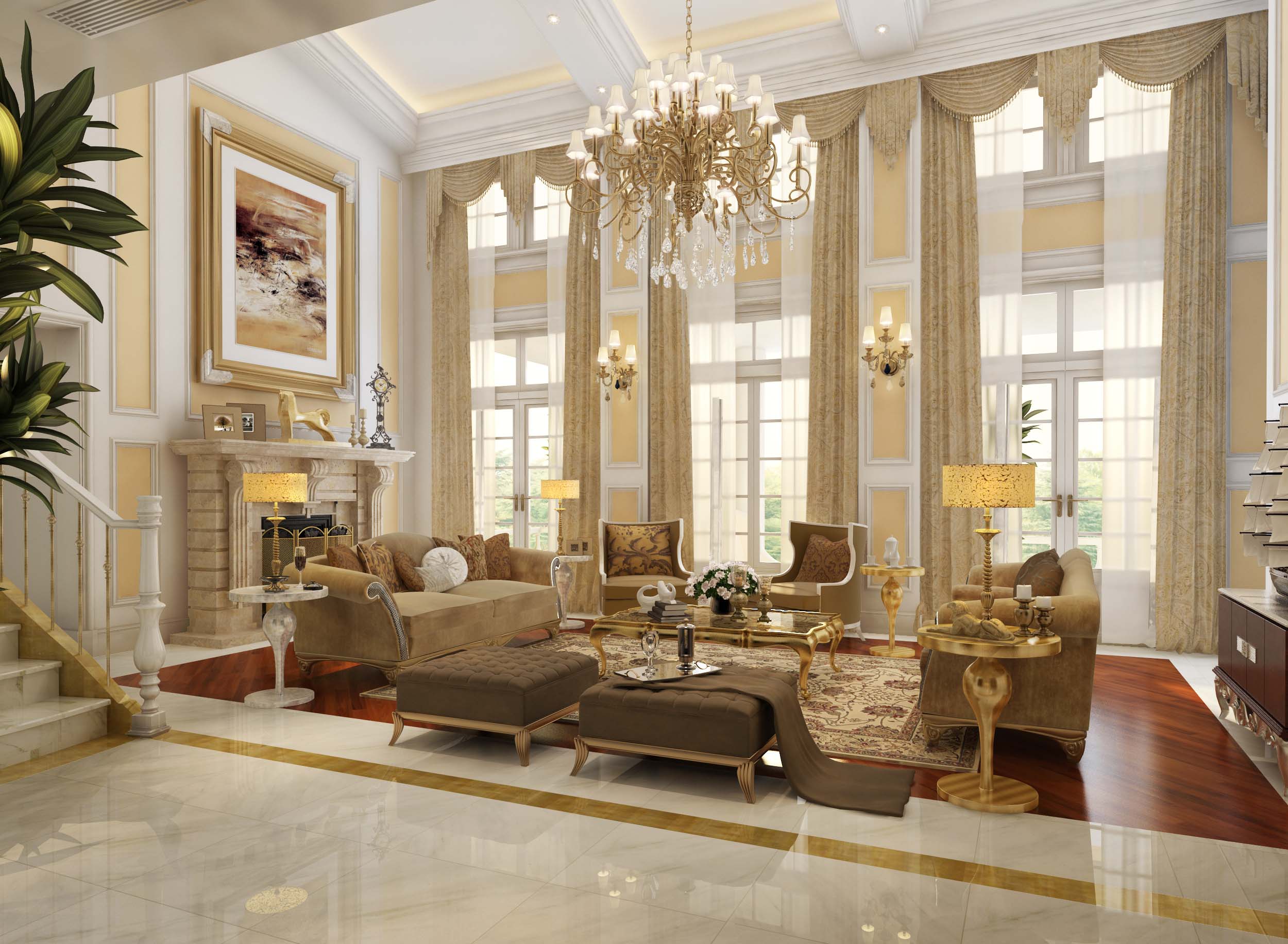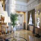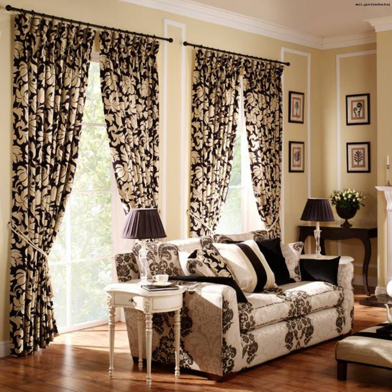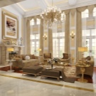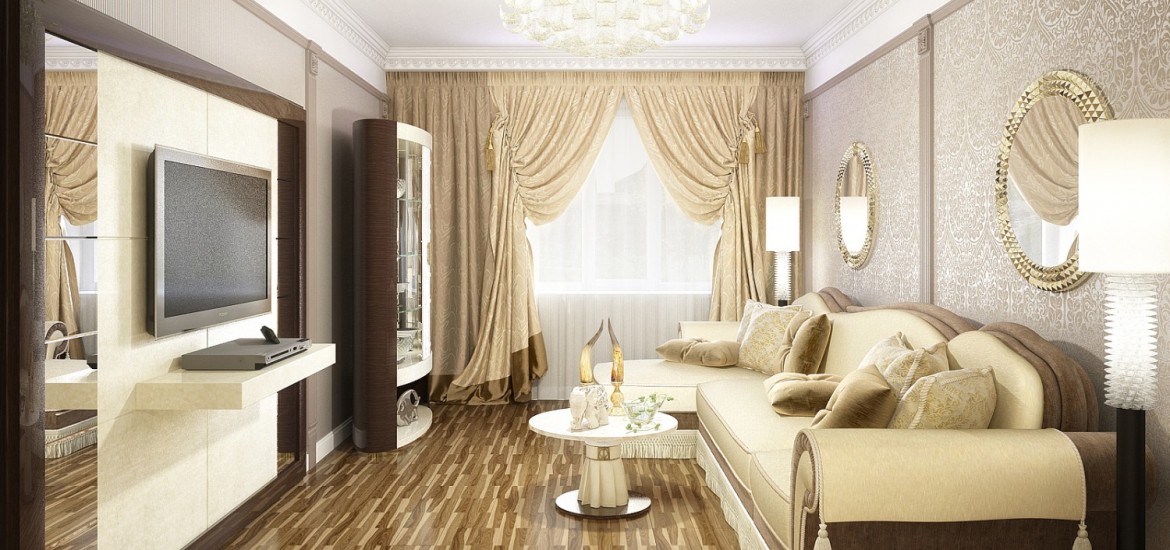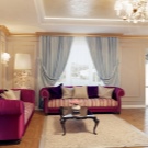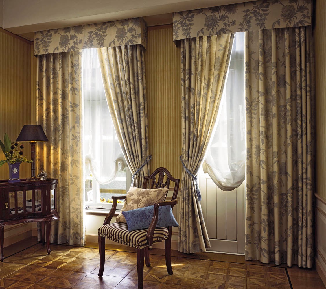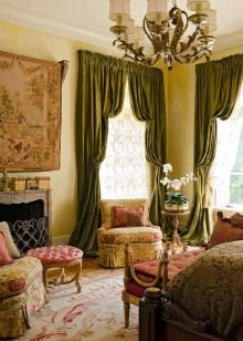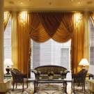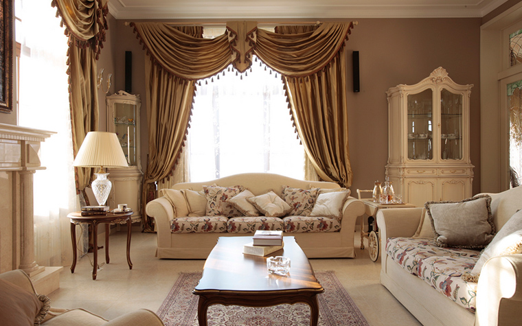 - In the room, on the contrary, long curtains falling on the floor will look good. Depending on the degree of darkening of the room, curtains are chosen from fabrics that are lighter or denser. In the living room, luxury Italian-style curtains add charm and solemnity.