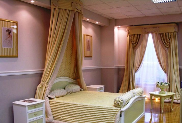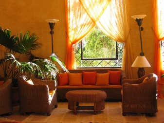 Canvas curtains in the center are attached with a socket or brush. The decor of curtains can be used abundantly, but variants with its absence are also popular.