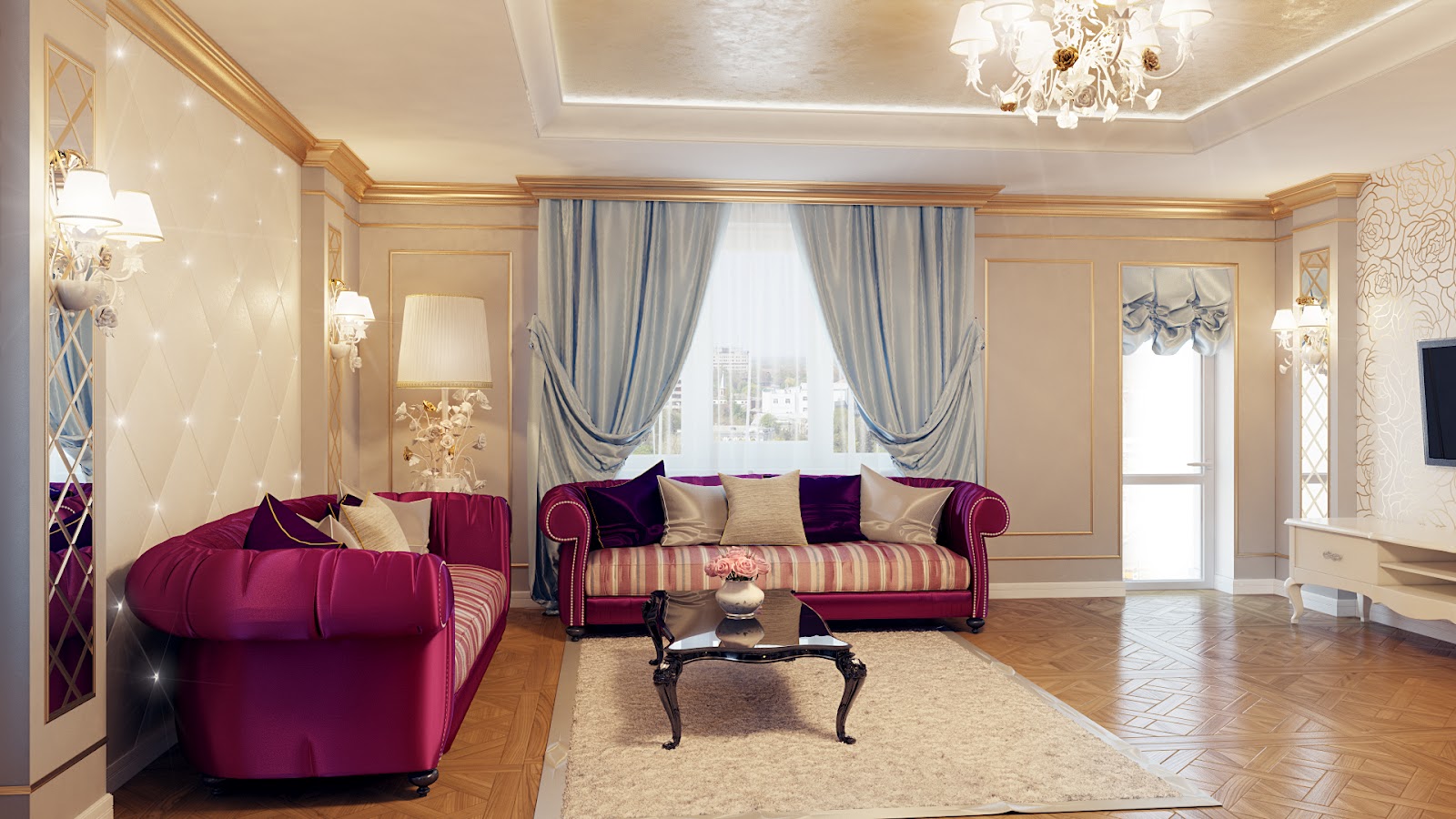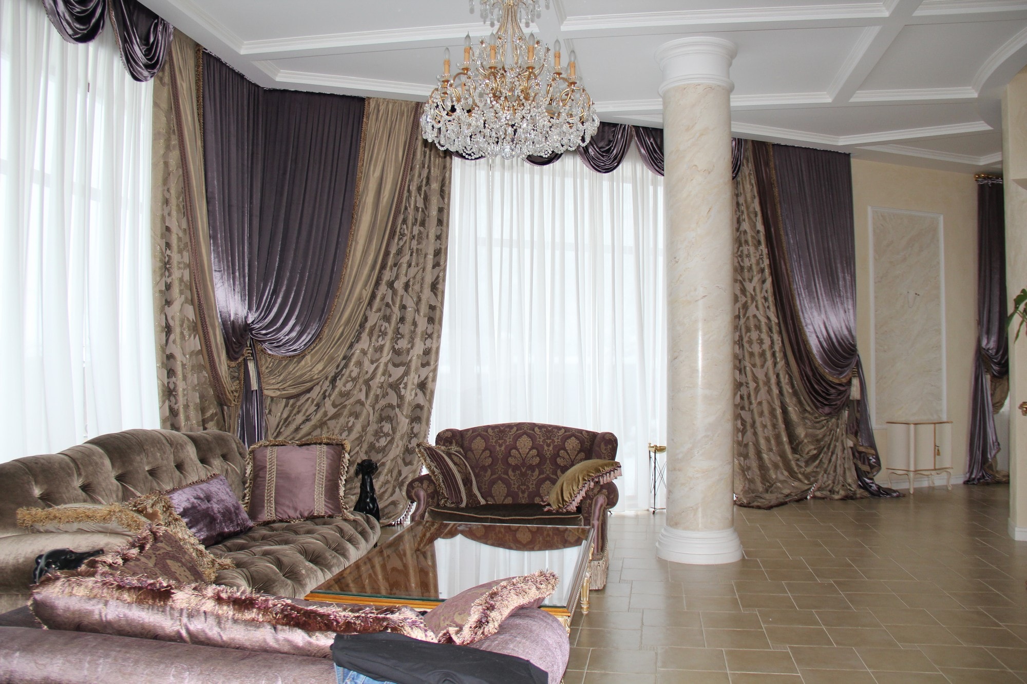 Most effectively, these curtains look when you make a large window opening. This allows them to fully reveal their beauty and pomp. Due to the existence of various finishes, they are suitable for any room. Restaurants and cafes, theaters and museums, as well as any residential premises can be decorated by them.