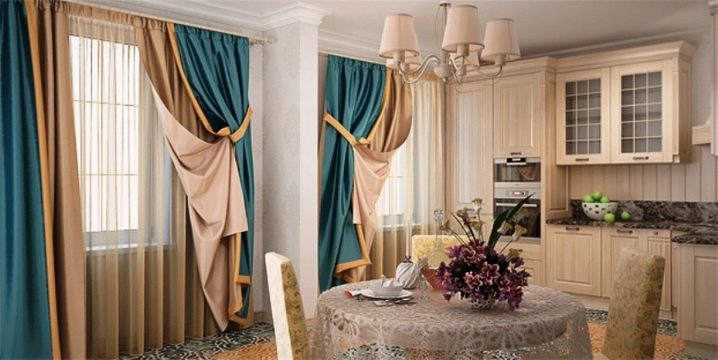 - For kitchen interior It is better to choose Italian-style curtains from wear-resistant fabrics. They will not be afraid of repeated washing. The colors should fit the overall interior. It is better to make the length shorter, and to lay the sheets overlap and use asymmetrical hooks.