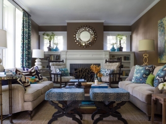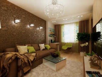 Vibrant orange and light mauve, turquoise and blue, yellow and gold shades of textiles will look great with brown wallpapers. Worth remembering not to make the room motley, you need to respect the proportion: three quarters of the main color and one quarter of the contrast. The maximum number of colors in one space is better to choose no more than three, for a wider palette of colors need special knowledge.