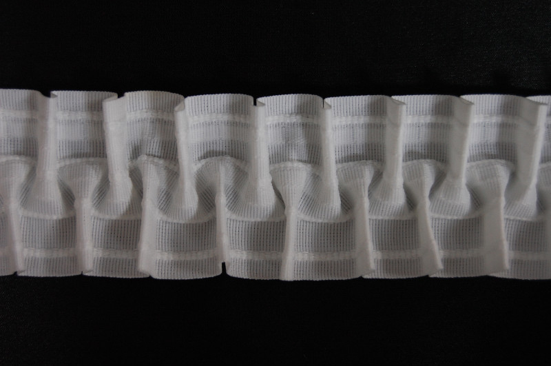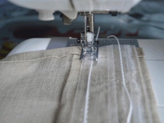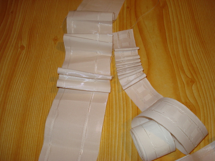 The most convenient thing in it is that it is made not from stretching fabric, but from dense material, due to which it can be easily sewn on a typewriter to a fabric, and folds can be made of any density. Their size and quantity can be adjusted by several laces, passed through the entire length of the tape.