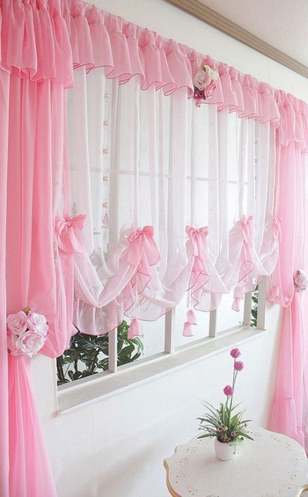 - The upper part of the curtain instead of the decorative strip hides another element, for example, a pelmet.