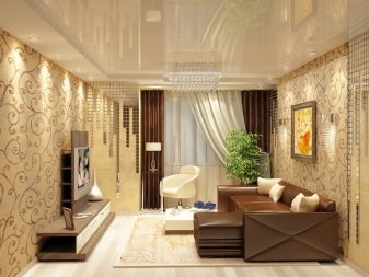 If your entire living room is made in shades of brown, the pearl, silver and pale pink elements will be a good addition to the curtains of this color. Such solutions add sharpness and brightness to the dreary atmosphere.