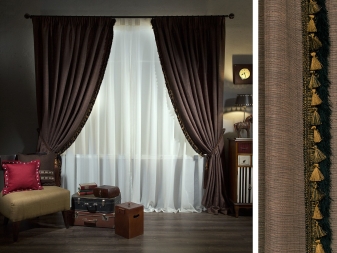 To answer this question, you need to pay attention to the features of the brown color, location, shape of the curtains and their material. We considered the first two points above, so we will pay attention to others.