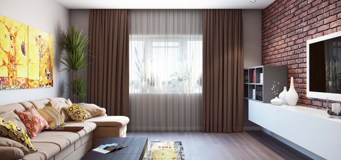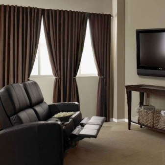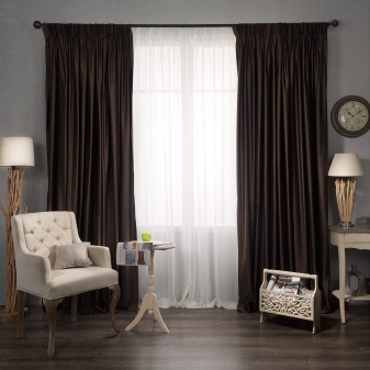 - brown curtains are versatile and, unlike light fabrics, are easy to clean;