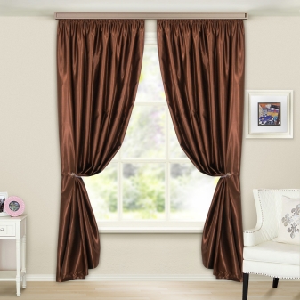 - satin, silk - natural fabrics, capricious in terms of care, but give a rich look to brown curtains;