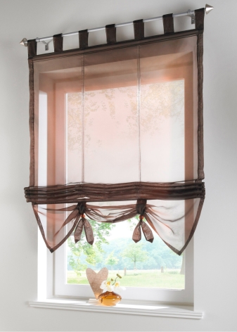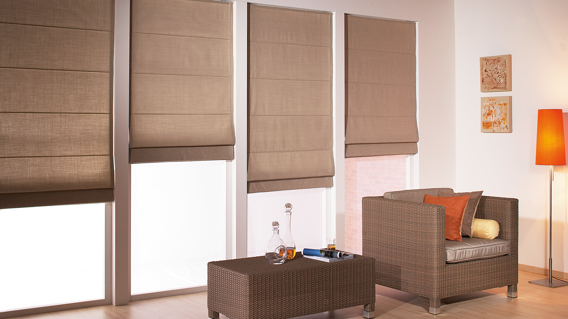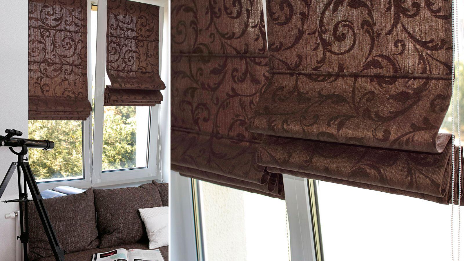 This is a dark brown or light fabric with a lifting mechanism. When twisting, the material bends and folds. Unlike the classic look, Roman curtains are tightly attached to the glass of the window, so they are used in small rooms.