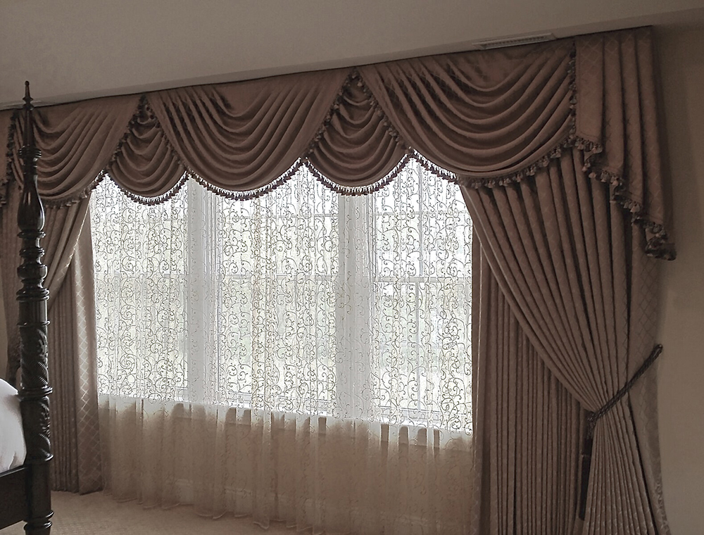 - asymmetrical curtains of unusual shape and length are often placed in the bedroom;