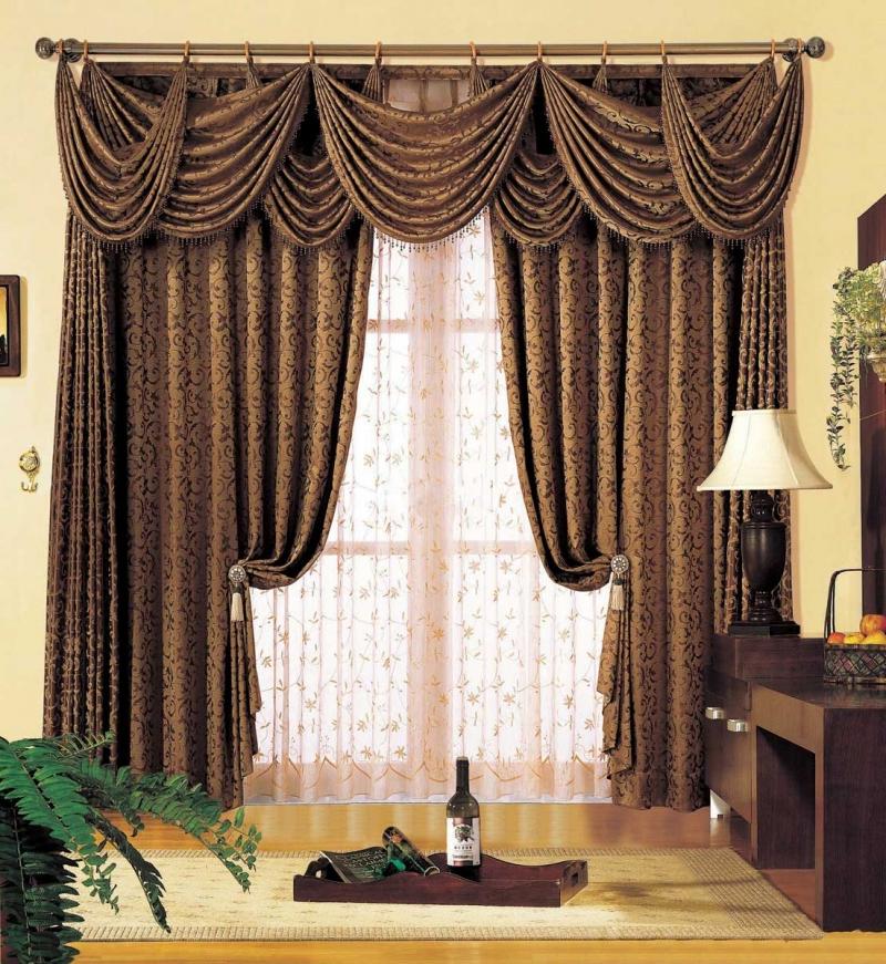For lovers of classic options fit dark brown Italian curtains with a pattern.