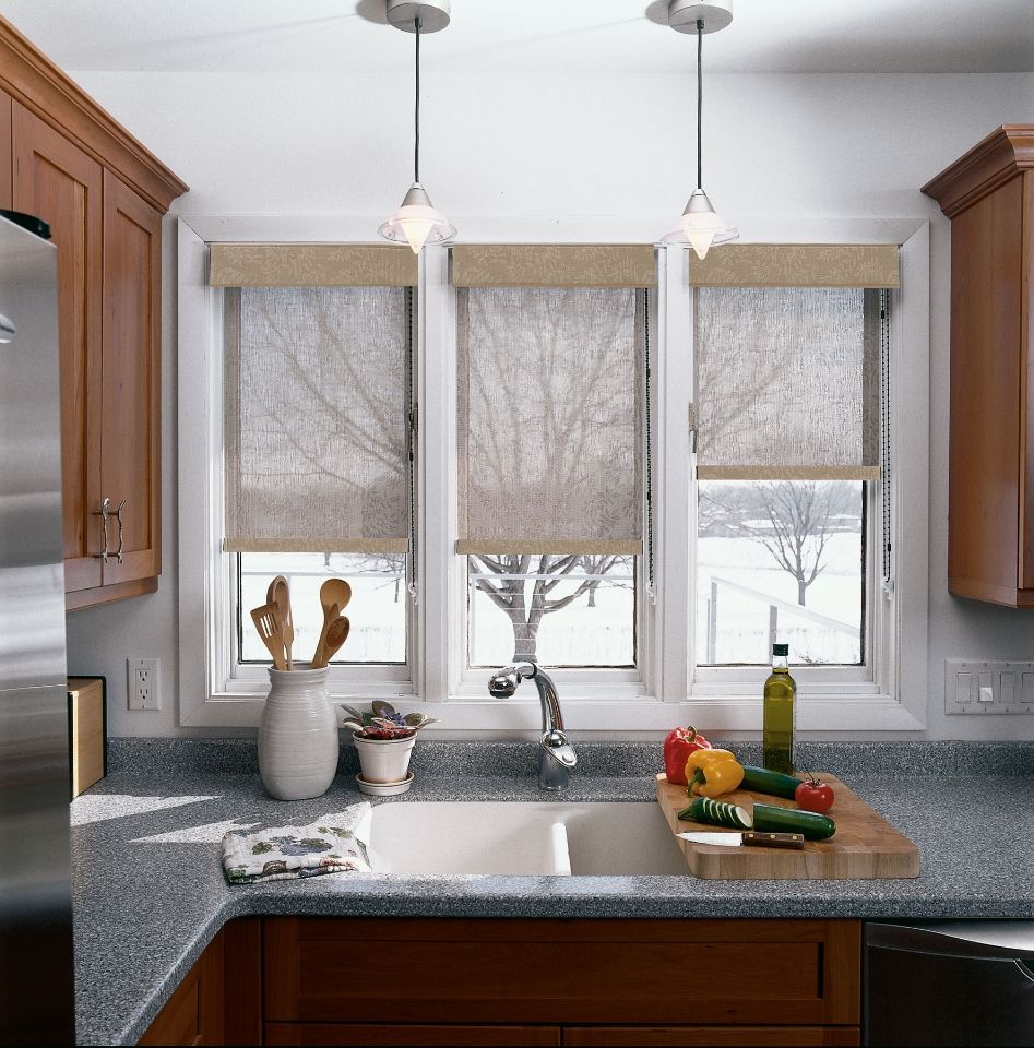 In the kitchen, dark brown tulle would not be the best option. First, most kitchens are small in size, and a dark shade reduces space even more. Secondly, light matter develops from the slightest breeze of the wind, and its bottom is able to be near the stove. There are many alternatives to such curtains.