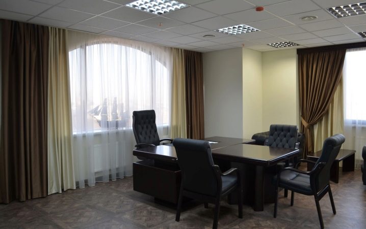 Brown curtains are suitable for all kinds of offices. They emphasize the strict business atmosphere of such a room.