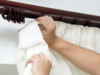 There are many options for fixing curtains on the eaves. Among them, curtain hooks - the most common option.They are attached by rings, and also act as independent fastenings.