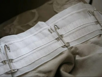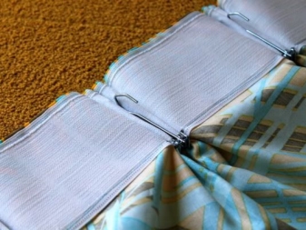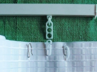 Hooks for fixing curtains on the eaves are sold individually, but sometimes on sale you can see a special curtain tape with hooks strung on it. It can simply be attached to the curtain fabric. The fastening elements here are securely fastened to a string that will not slip off, so this solution is more reliable.
