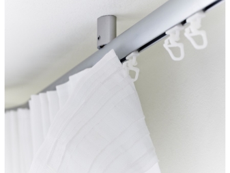 - Closed the options snap onto the eaves, after which they move freely along the bar, so the loops on the curtains for which the hooks are hooked will not be able to come off. You can not be afraid of moving the curtain: it is very securely fastened to the eaves.