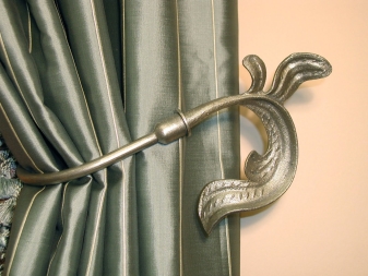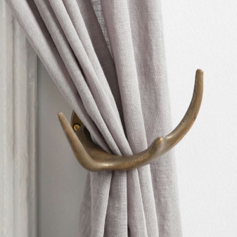 In addition to the main group, you can select a decorative accessory that fixes the hooks. This product is also called a hook. Such fittings are used for fixing the curtain fabric grabs. Their task is to pull the material aside, forming a rounded fold.