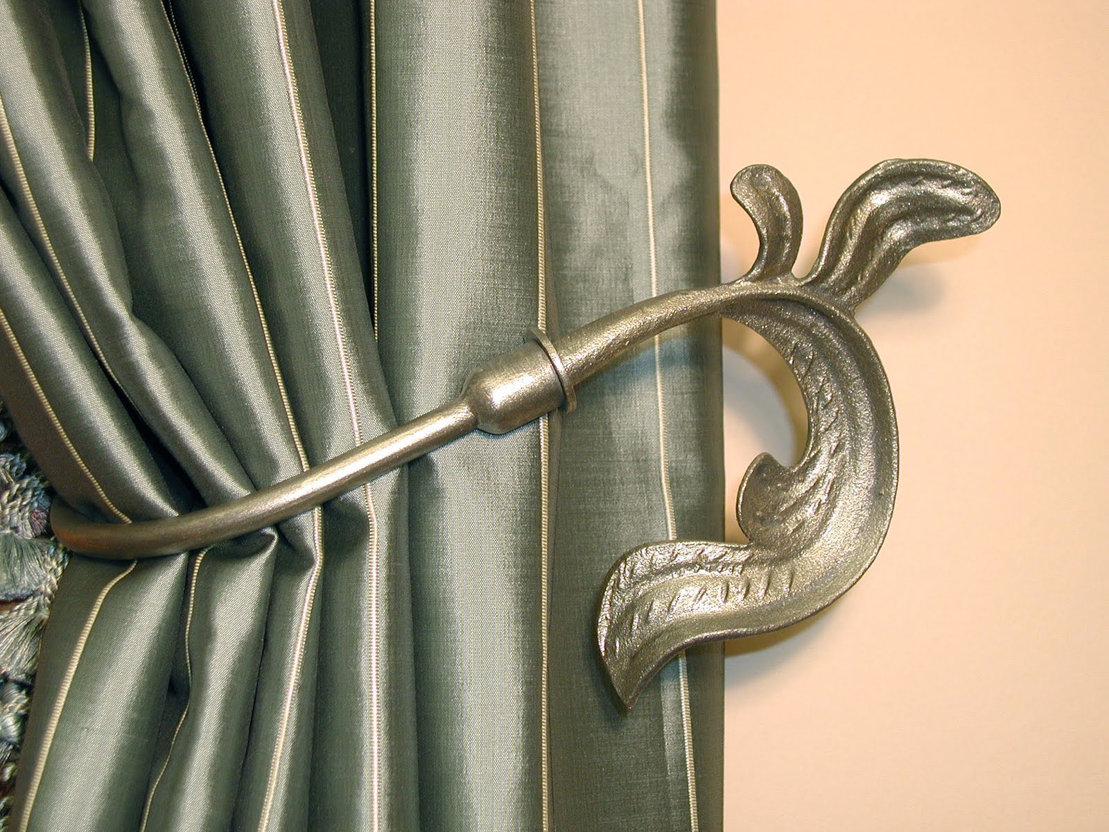The surface of products is often decorated with a variety of images: a flower, an ornament, the head of an animal, a snake, a snail and much more that design ideas are capable of. This type of hooks are mounted on the wall or window slope with screws, as well as special brackets. In aesthetic terms, sometimes there is something in common with the design of the eaves. Often they are sold in the kit.