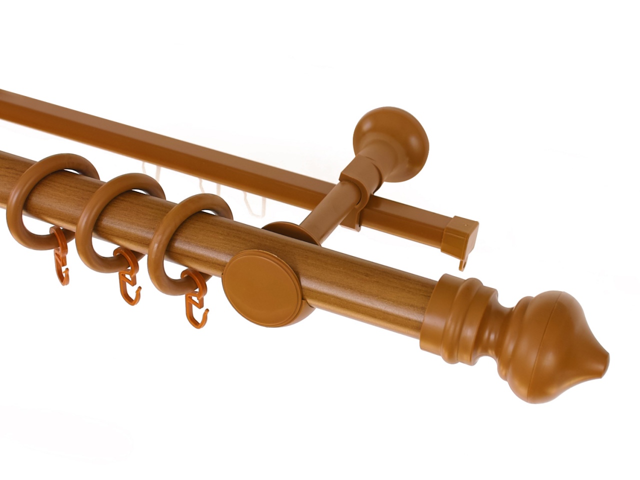 A feature of these elements is their versatility, they are designed for the cornice-string, and the model with grooves, and the classic rod with a round profile. Fittings have a design that allows the use of hooks to move from the rings to curtain canvases.