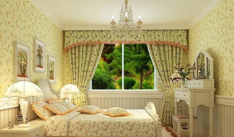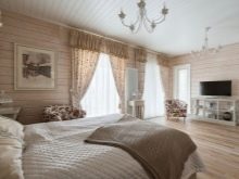 - Cozy bedrooms in Country style can be supplemented with lambrequins from a very light fabric drapery, which will look very airy;