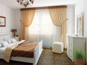 Lambrequins easily complement any interior of the bedroom, the main thing is not to forget to take into account all the nuances and correctly select their design, and in addition, take various new items into account.