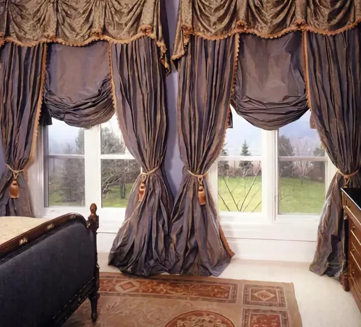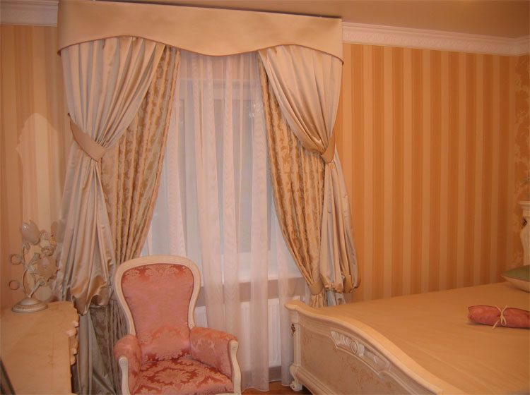 - Symmetrical drapery of pelmets looks very nice and neat.