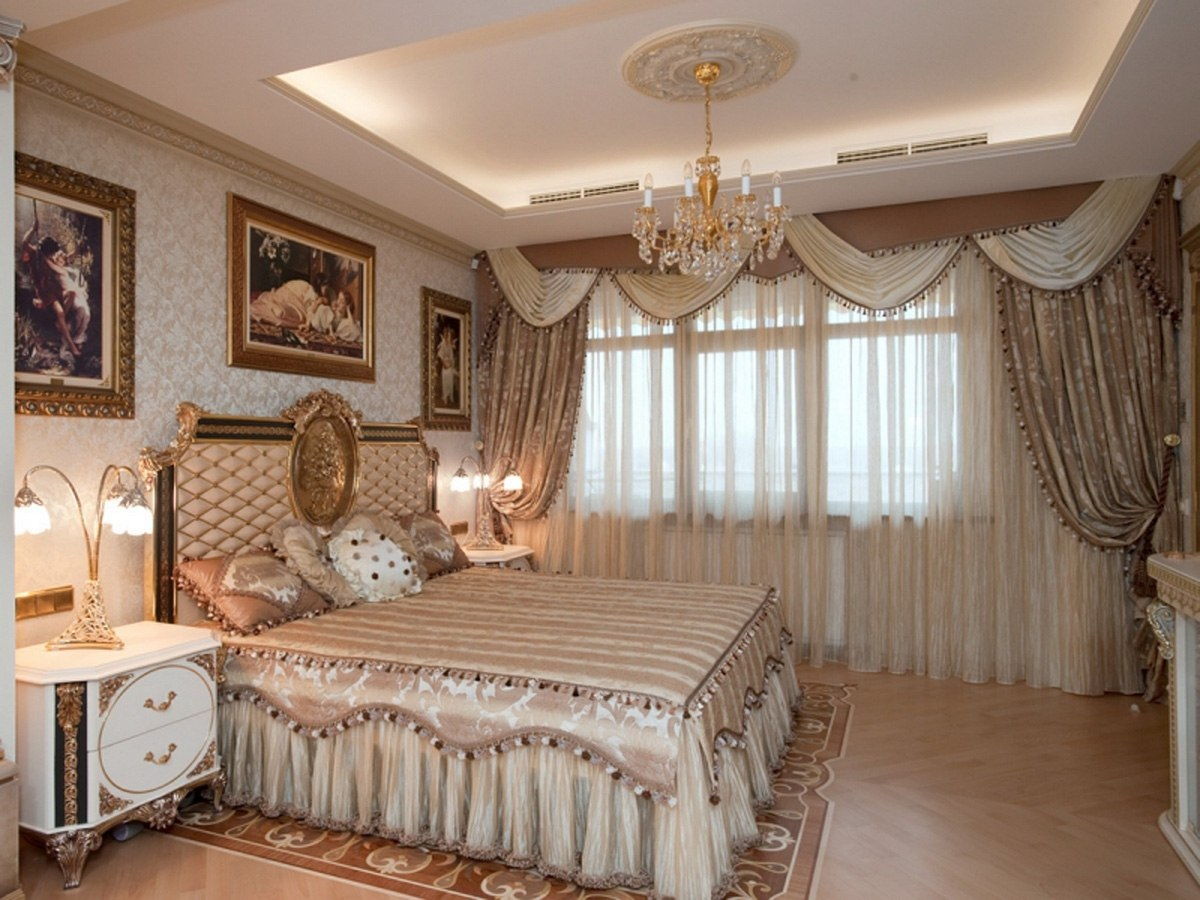 If the area of the bedroom is not very large, then do not forget that the curtains and pelmets can visually make it even smaller, the same applies to the bedrooms, which have an abundant amount of decor and furniture. Here you should always take into account the compatibility of objects and not overload the room, otherwise it will simply be uncomfortable to be in it. In large rooms there is room for the realization of the most unusual designs.
