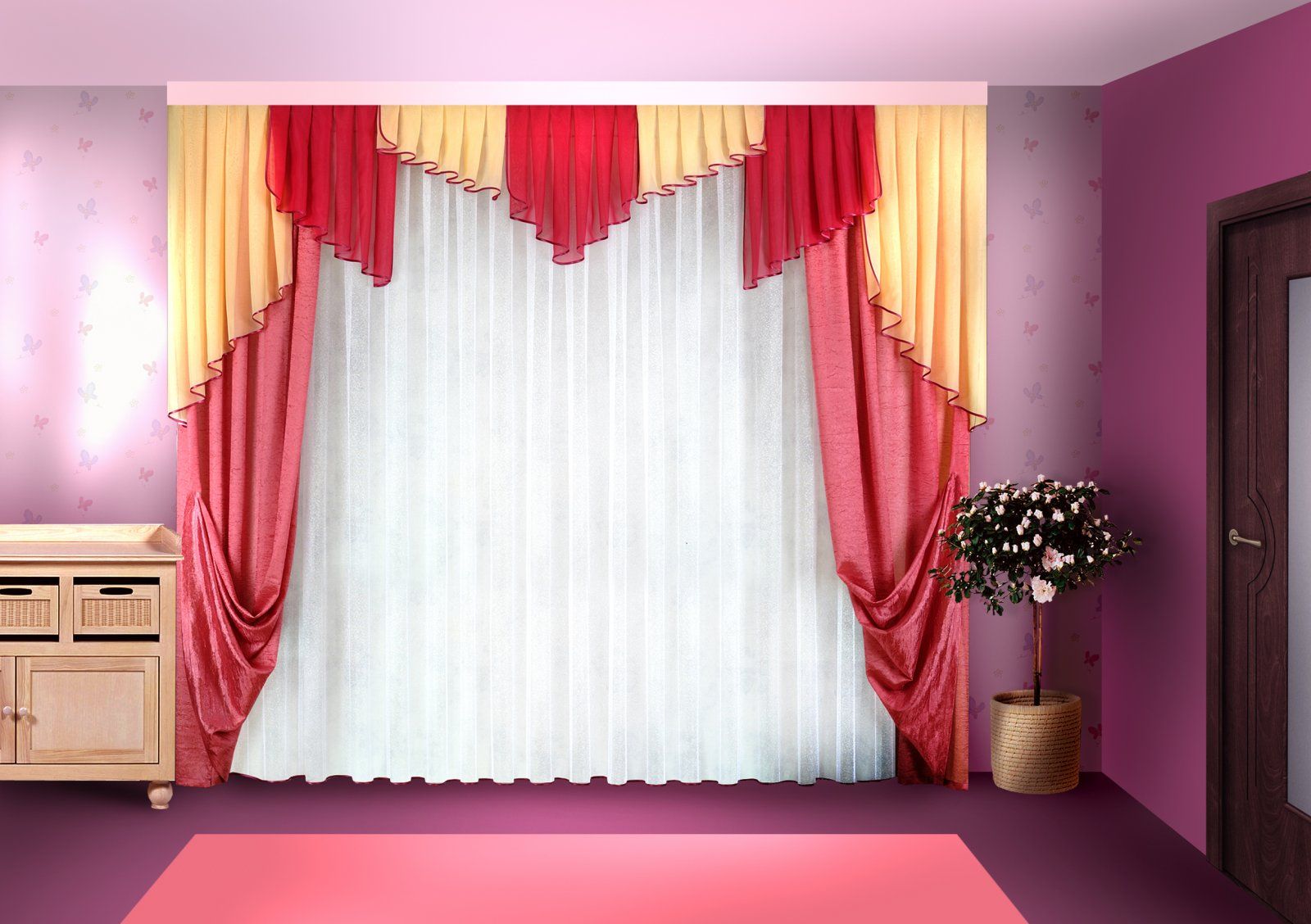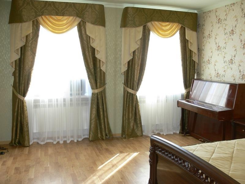 - For creating and sewing lambrequins the most various types of fabrics are used, They are made from a veil, silk and other light fabrics, and, of course, from thick cotton;