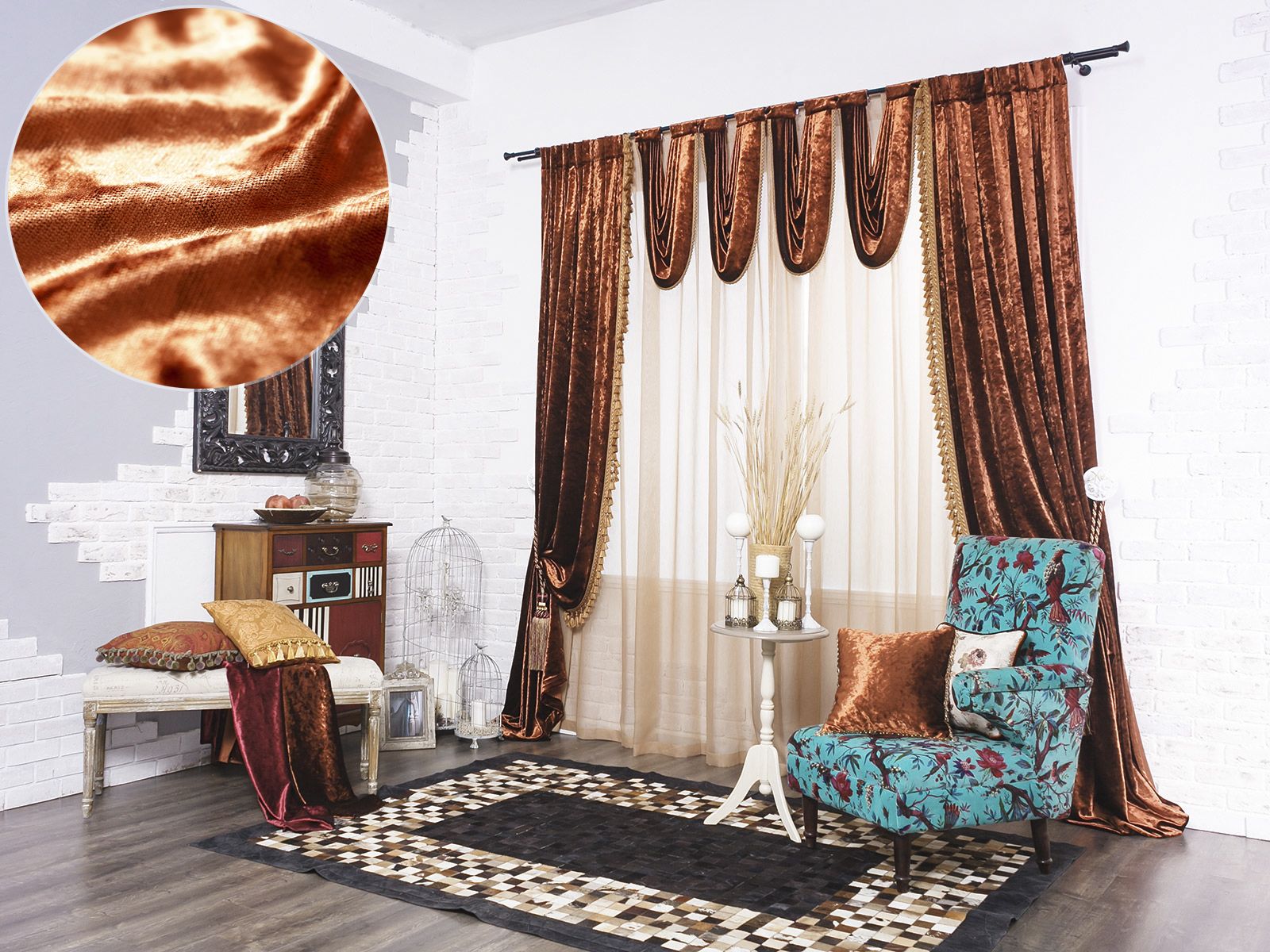 - If the room is spacious and the style allows you to choose luxury models of curtains and lambrequins, then it is best to give preference to expensive fabricswhich definitely will not be ignored. Lambrequins from velor or velvet will be an excellent option, but do not forget that it will be more difficult to care for them;