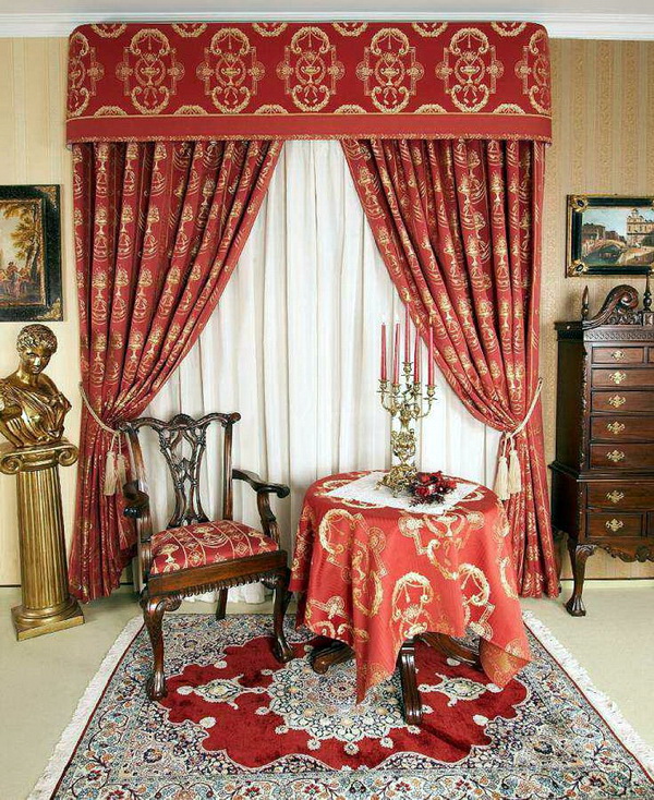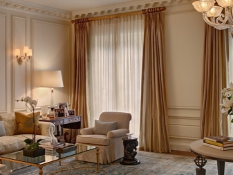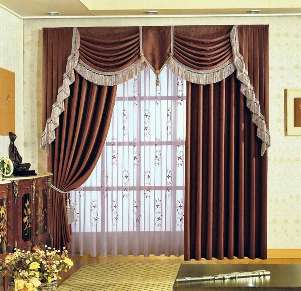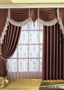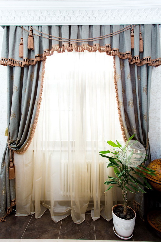 The classic French-style drapery consists of at least 3 layers - a light lace or tulle curtain, gathered in elegant folds, thick curtains on the sides and an ornate lambrequin. If there is not enough natural lighting or a picturesque view opens from the window, then you can do without curtains. Currently, various types of curtains are popular. lush baroque, refined Italian, cozy Austrian, concise Roman, minimalist Japanese. The choice of style is dictated by the purpose and design features of the room.