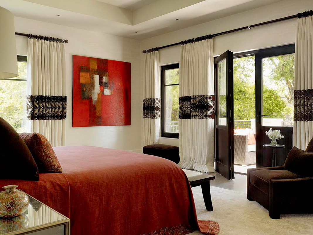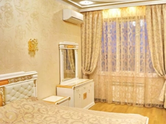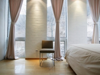 Choosing a curtain model is a fascinating, but not an easy task. In addition to the decorative fabric, you need to take into account how the version you like will fit into the already created interior. In the bedroom, overlooking the sunny side or on a street well lit at night, heavy blackout curtains will be a must. On the other hand, small narrow windows that allow little light, it is undesirable to close the multi-layer drape. Curtains for wide panoramic windows can consist of three parts - straight side curtains and central, selected in the form of an elegant glass.