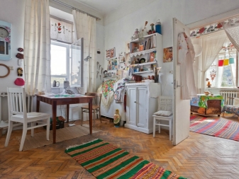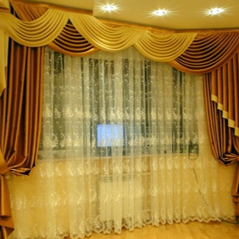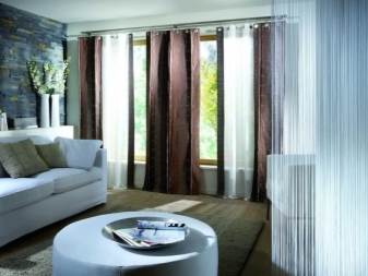 Recently, improvised draperies have become fashionable, creating a relaxed atmosphere of home comfort. They, as a rule, are not moved apart and keep on separate hooks or spirals. Their fastening and design open wide spaces for imagination.